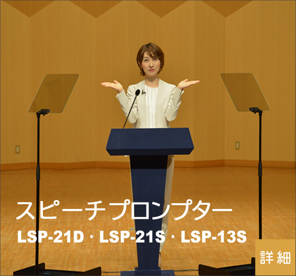 ポータブルモデルから大型モデルまで、さまざまなラインアップがあります。使用場所・使用目的にあった最適なプロンプターをご利用ください。