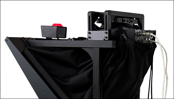 また、透過率50%ということは、反射率も50%になり、本来プロンプターに映る文字は暗くなるのですが、45度高反射ハーフミラーを搭載しておりますので、原稿を明るく見ることができます。