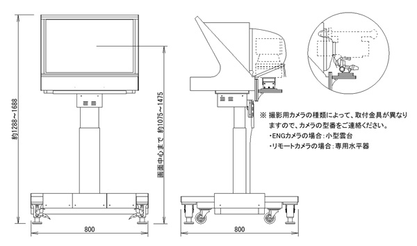 ・背面にリモートカメラ・小型ENGカメラなどを搭載することができます。(ご注文時にカメラの型番をお知らせください。)