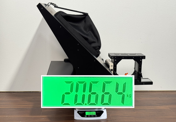 軽くて丈夫なアルミフレームをメインに構成していますので、本体質量は約20㎏です。