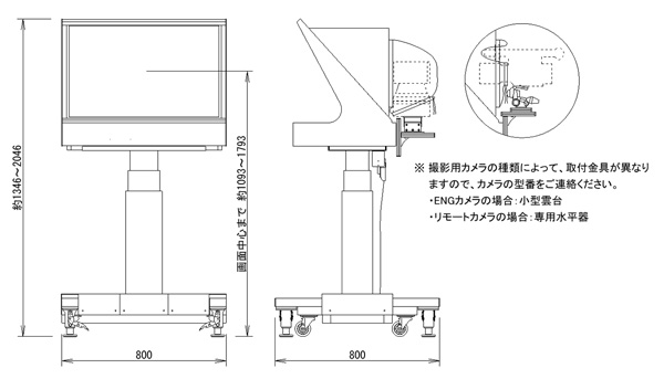 ・背面にリモートカメラ・小型ENGカメラなどを搭載することができます。(ご注文時にカメラの型番をお知らせください。)