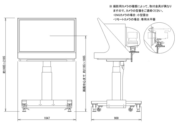 ・リモートカメラの動作による揺れを防止するために、ベース部を重量化し、フロアロックを使用することにより、安定性を高めたモデルです。